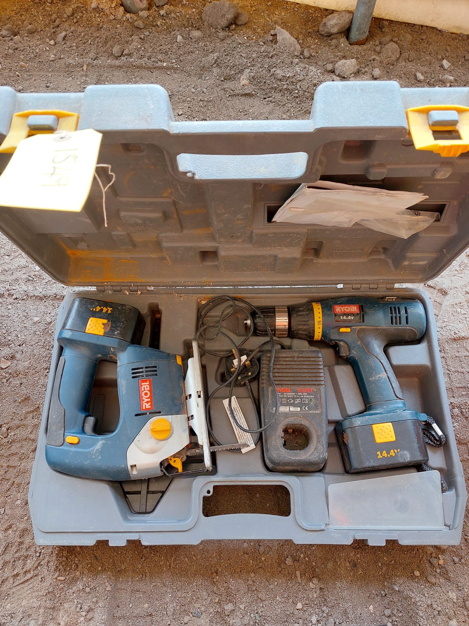 A Ryobi battery drill & saw in case